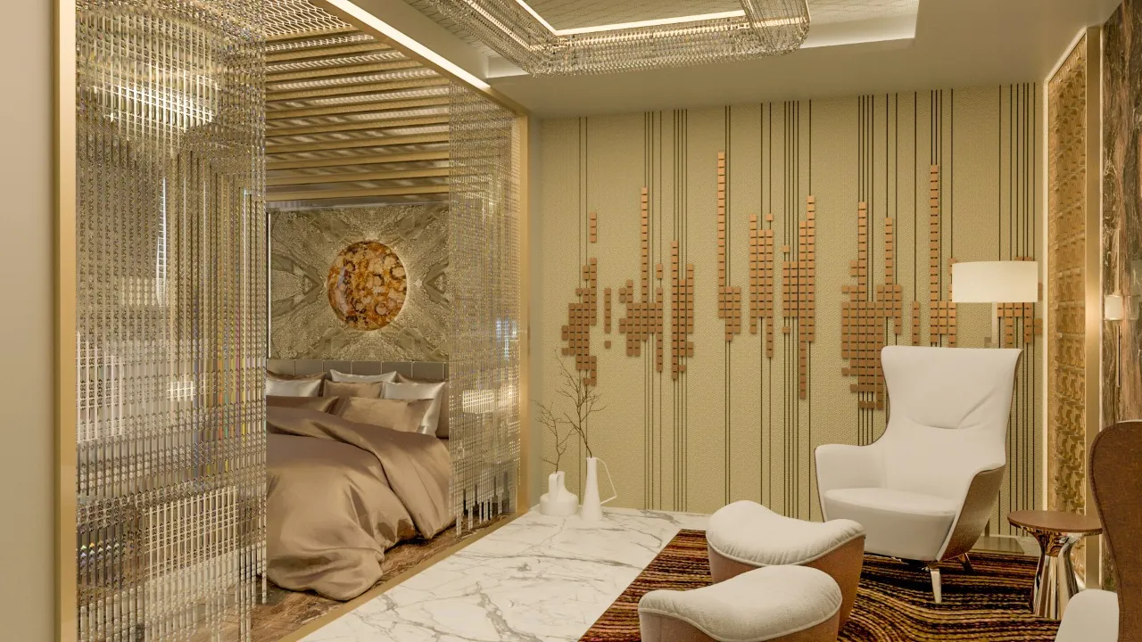 The interior design concept is one of contemporary luxury. The layout is planned to maximize the stunning views, while the material and finish palette is of the highest quality. It is a design for an exclusive urban home that offers both comfort and a powerful style statement.