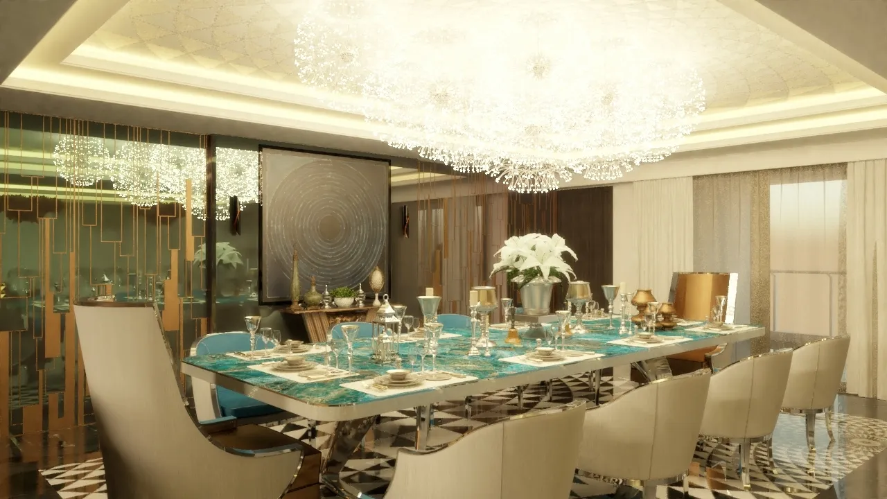 This 6,200 sq ft urban residence is located within the premium Kingfisher Tower high-rise in Bangalore. The design for this apartment is focused on creating a luxurious and sophisticated living space that takes full advantage of its prestigious location and panoramic city views.